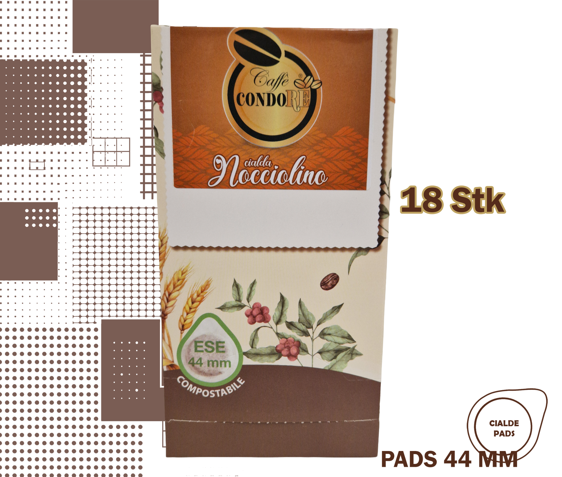 Condorè Nocciolino Kaffeepads – Aromatisierter Kaffee | 18 Pads, 44 mm