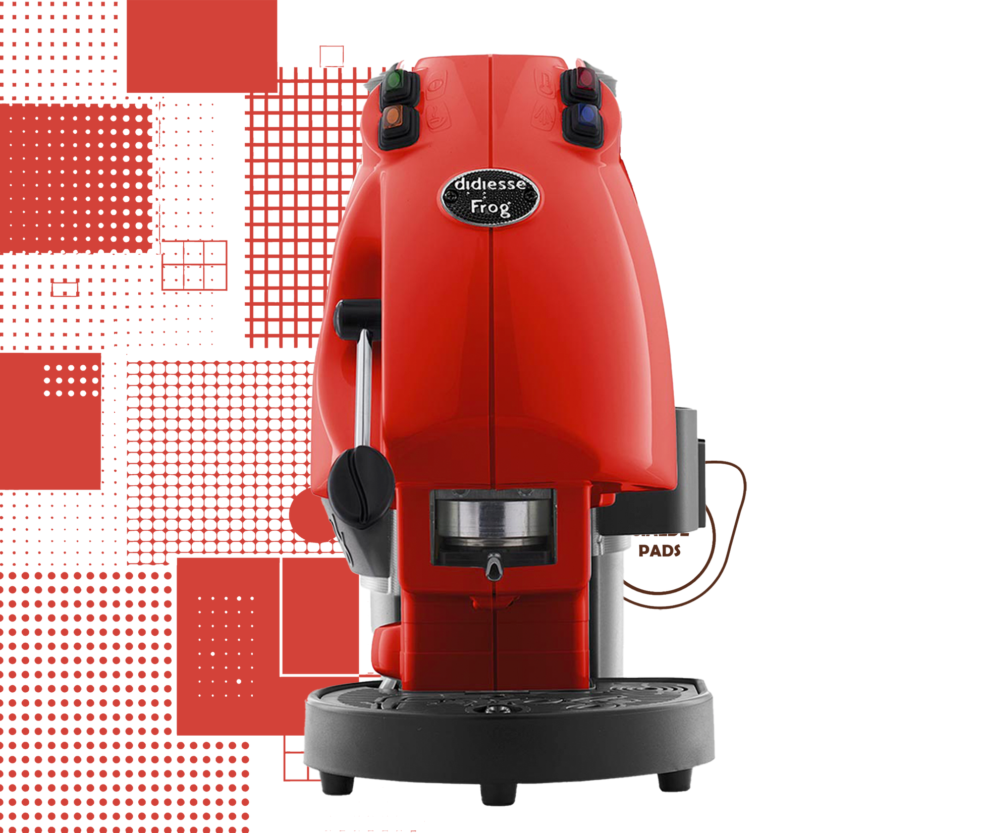 Die Didiesse Frog ist eine *Espressomaschine, die für ihre **farbenfrohe und spielerische Gestaltung* bekannt ist. Sie ist sowohl für den Hausgebrauch als auch für das Büro geeignet und bietet eine einfache Bedienung für die Zubereitung von Espresso mit *E.S.E. Pads (Easy Serving Espresso).