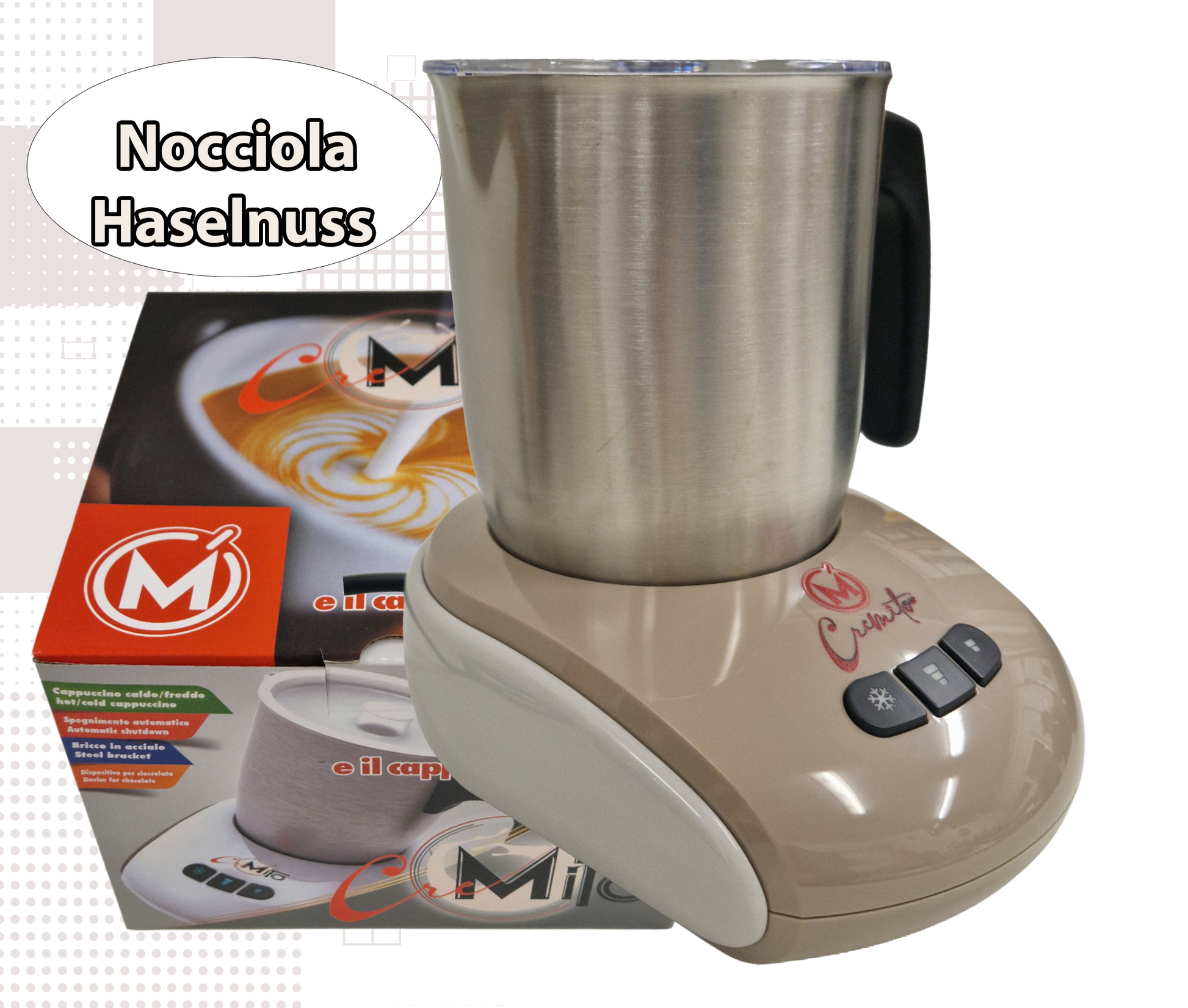 CREMITO Haselnuss | Elektrischer Milchaufschäumer für heißen und kalten Milchschaum aus Edelstahl