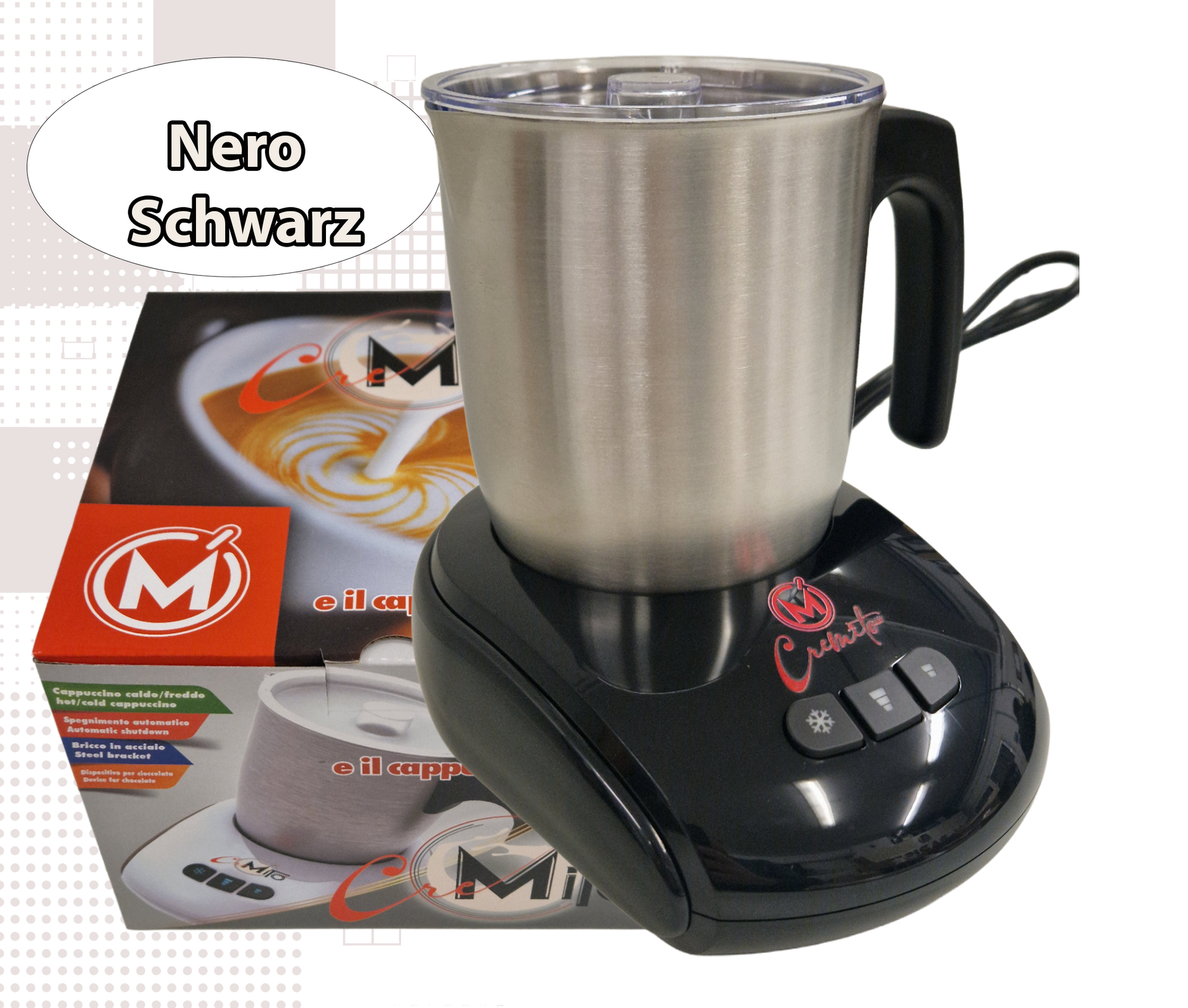 CREMITO Schwarz | Elektrischer Milchaufschäumer für heißen und kalten Milchschaum aus Edelstahl