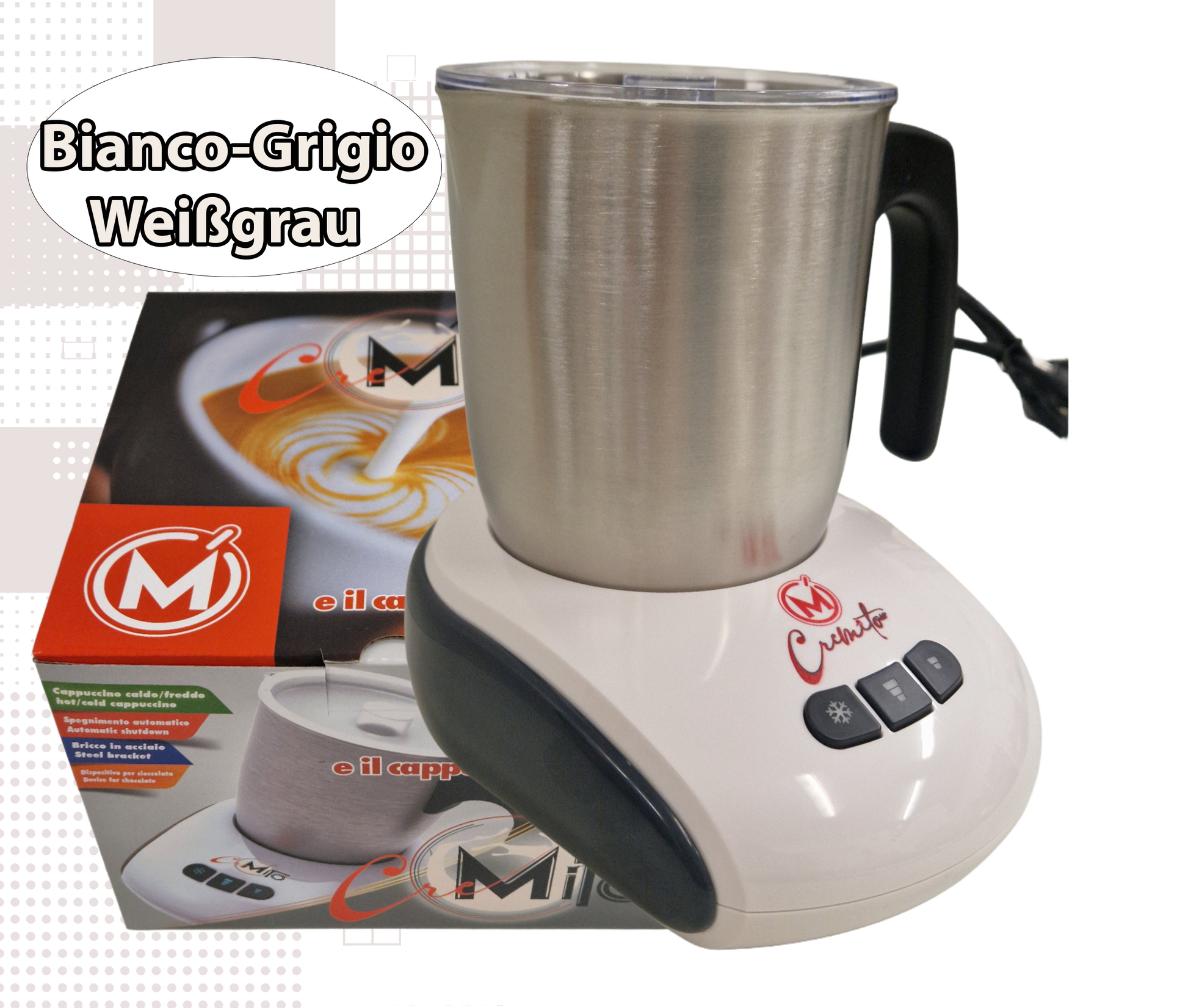 CREMITO Weiß Grau | Elektrischer Milchaufschäumer für heißen und kalten Milchschaum aus Edelstahl