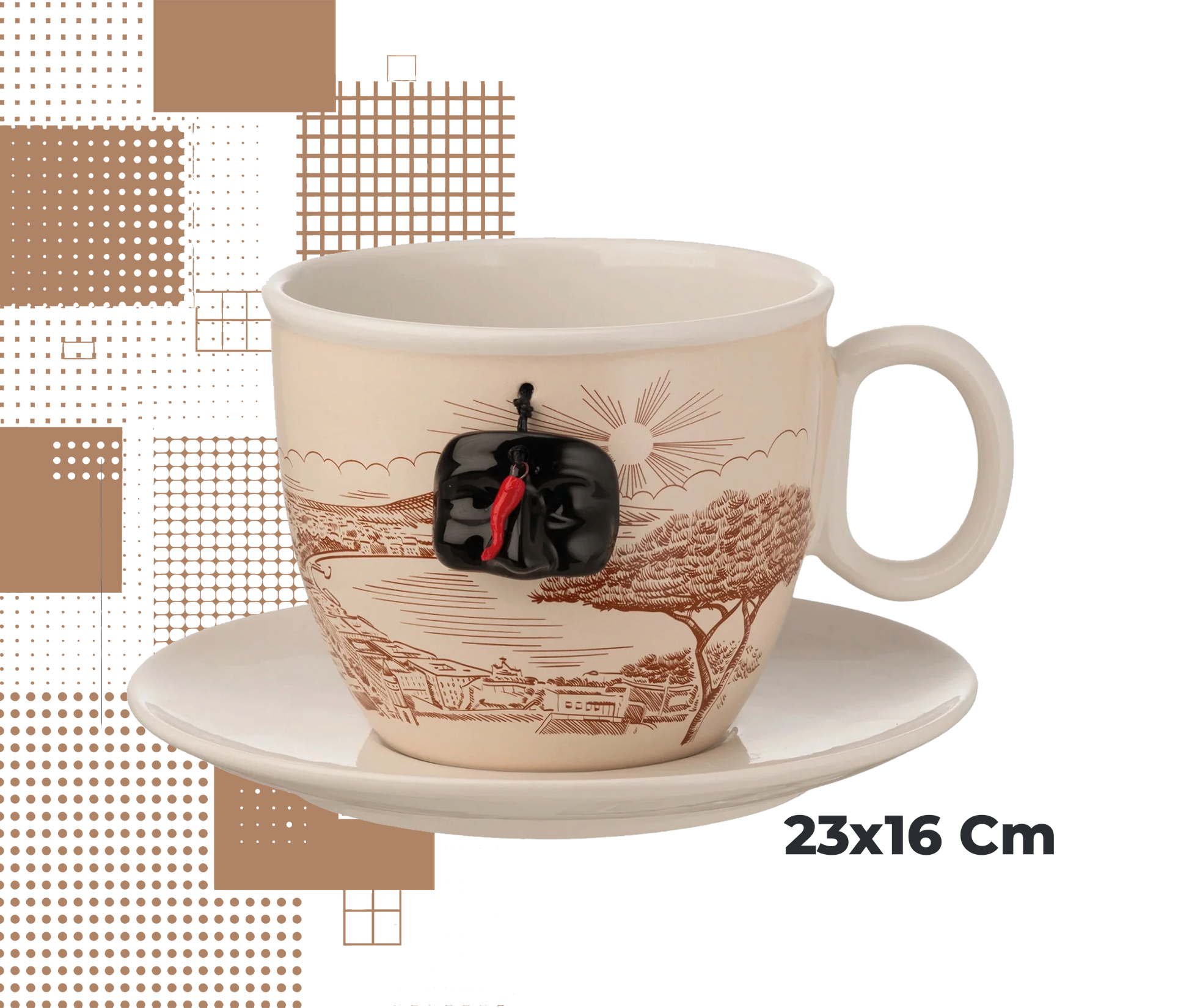 Organizza il tuo angolo caffè con stile grazie al tazzone grande in ceramica da 23 x 16 cm, pensato esclusivamente come porta cialde o capsule di caffè.